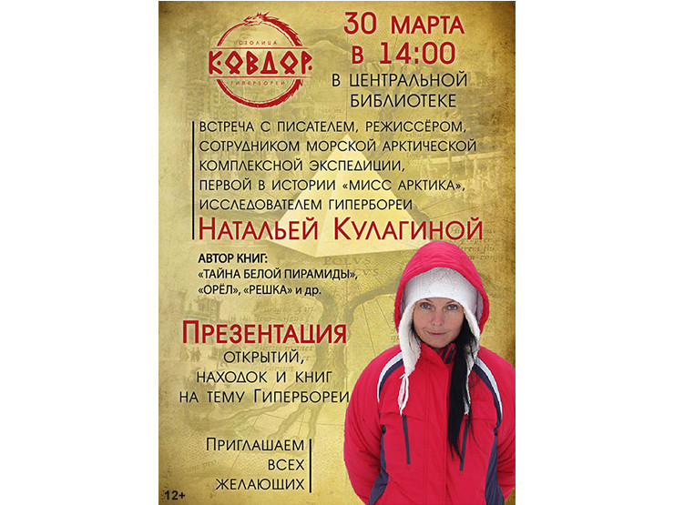 В центральной библиотеке Ковдора пройдет встреча с писателем, режиссёром, сотрудником первом морской арктической экспедиции, а также с первой «Мисс Арктика» Натальей Кулагиной.