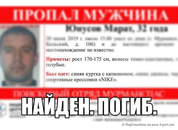 «Погибшим оказался Марат Юнусов, житель Мурманска 1986 года рождения, - сообщают волонтеры. - 20 июня он ушел из дома, и с тех пор место его нахождения было неизвестно. Прибывшим на место происшествия следователем СО по городу Мурманск установлено, что мужчина умер примерно два дня назад. На теле погибшего каких-либо телесных повреждений, указывающих на насильственный характер смерти, не обнаружено».