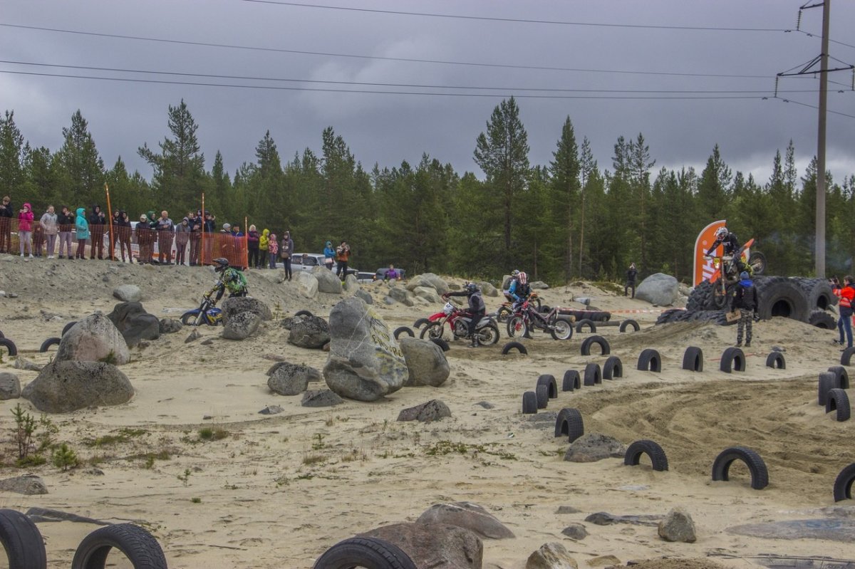 В Оленегорске проходит двухдневный мотофестиваль по эндуро «Три горы». В первый день соревнований участвовали спортсмены из Мурманской, Ленинградской областей, Санкт-Петербурга и Эстонии. Жалко, но оленегорцы на этот раз в гонке не соревновались.
