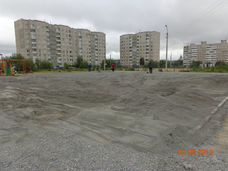 В Мончегорске продолжаются работы по обустройству спортивной площадки и детского городка.