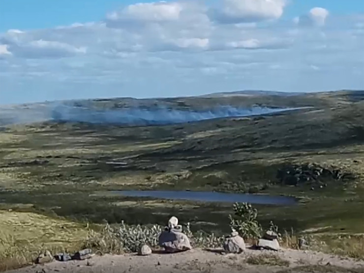 «Горит тундра в районе Териберки. 20-25 километров от развилки», - уточняет автор поста.