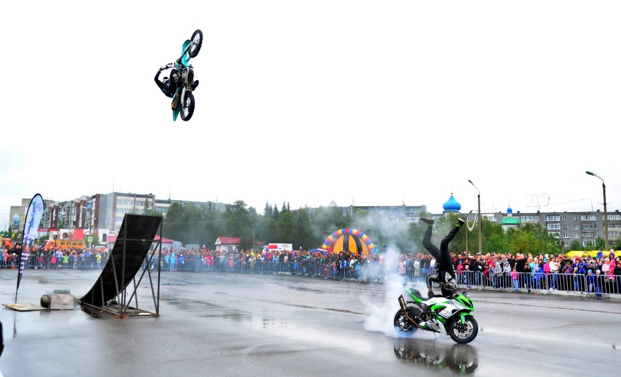Но все же самым ярким событием этого дня и настоящим центром притяжения для горожан стало стантрайдинг-шоу. Виртуозы из Финляндии – мастера экстремальной езды на мотоциклах Себастьян Вестберг и Нико Саккинен, опровергли все законы гравитации и заставили мокрый от дождя асфальт буквально плавиться под колесами своих стальных коней. Головокружительные трюки, где малейшая ошибка может стоить байкерам здоровья, зрители смотрели с замиранием сердца. Но как у настоящих профессионалов, у финнов все рассчитано до миллиметров, а за спиной годы тренировок и выступлений по всему миру. «Вилли», «Канкан», «Фламинго», «Чемпион» – любой элемент стантрайдинга выглядит эффектно. Неожиданные па с байком, кувырки и перевороты, головокружительные сальто в воздухе вызвали у зрителей бурю восторга и шквал аплодисментов.
