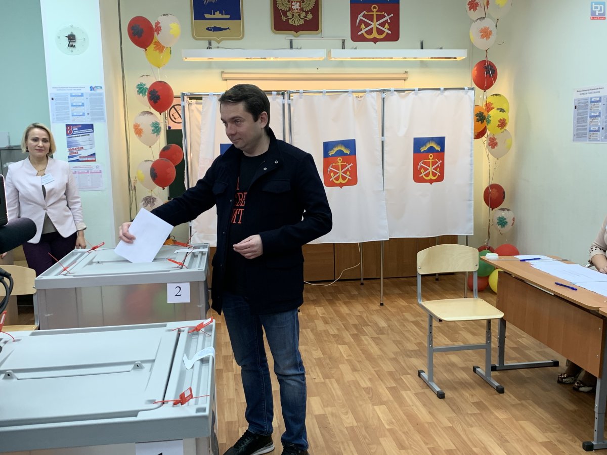 Временно исполняющий обязанности губернатора Мурманской области Андрей Чибис проголосовал на выборах губернатора. На избирательный участок он пришел вместе с супругой.