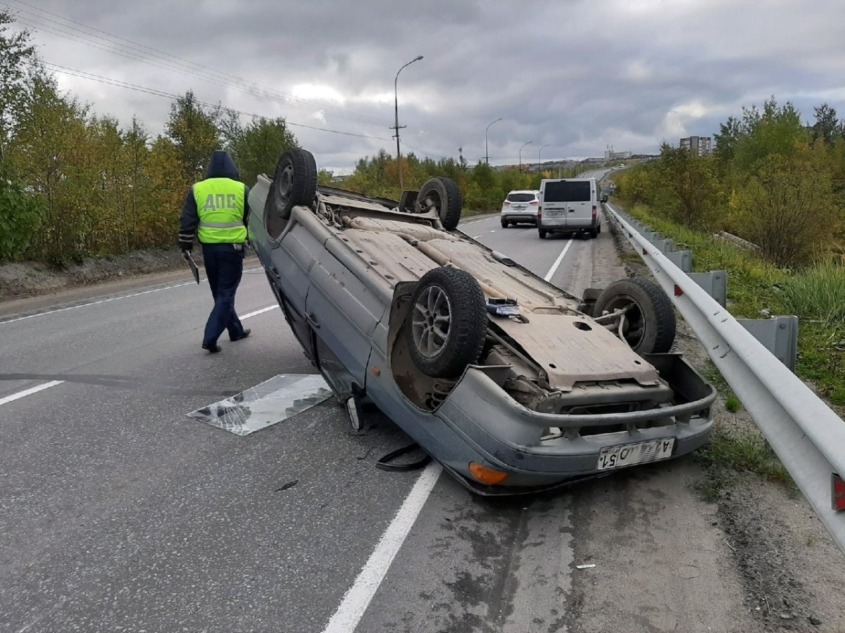 В понедельник утром на въезде в Апатиты со стороны Кировска случилось ДТП, в результате которого перевернулся автомобиль. Свидетели аварии выложили фото в паблике «Дважды два».