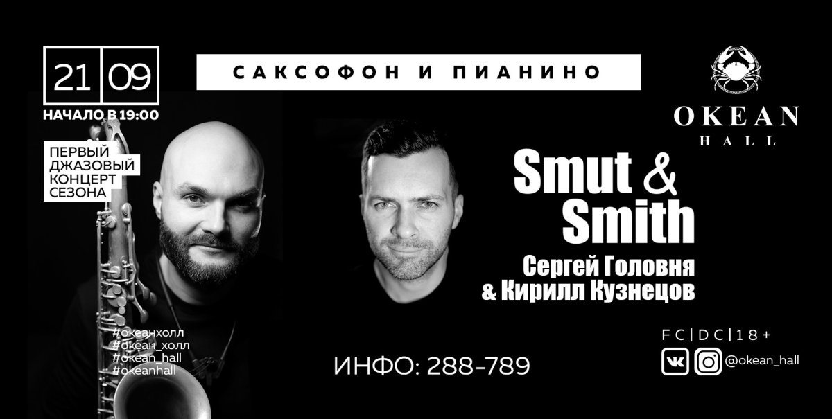 21 сентября в «Океан холл» состоится презентация нового джазового проекта легендарных саксофониста Сергея Головни и пианиста Кирилла Кузнецова - Smut & Smith – абсолютно новый проект на стыке жанров, участники которого исследуют новые звуковые пространства.