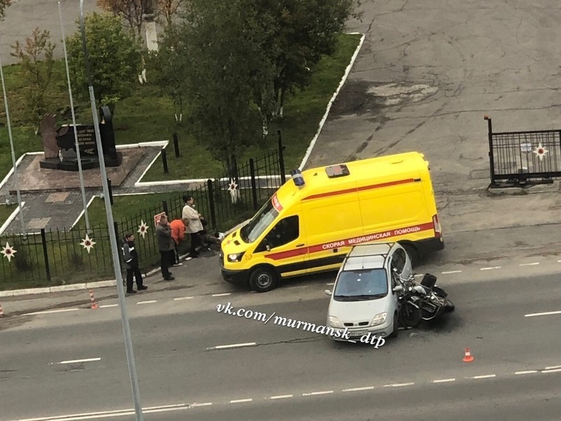 Сегодня утром в Мурманске произошла авария. Не поделили дорогу легковая машина и мотоциклист. По информации пользователей Интернета, ДТП случилось около управления ГУ МЧС на улице Шабалина около 8 утра. Свидетели опубликовали несколько фотографий. На них и мотоцикл, и легковой автомобиль столкнулись и расположились поперек дороги прямо напротив ворот управления МЧС.