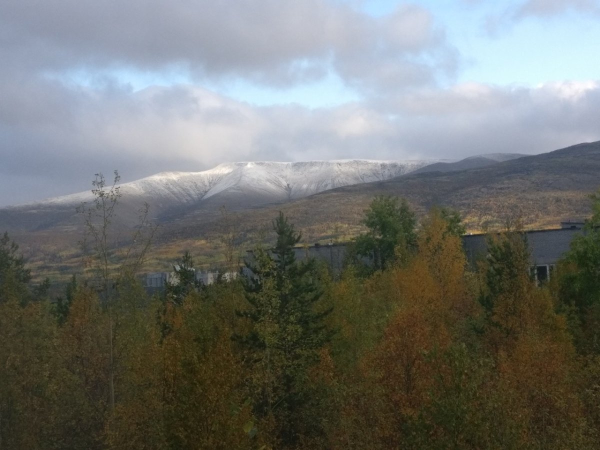 Пока во всех частях Мурманской области господствует осень, к Хибинам уже подбирается зима. Жители Кировска и Апатит делятся в социальных сетях фотографиями заснеженных вершин гор.