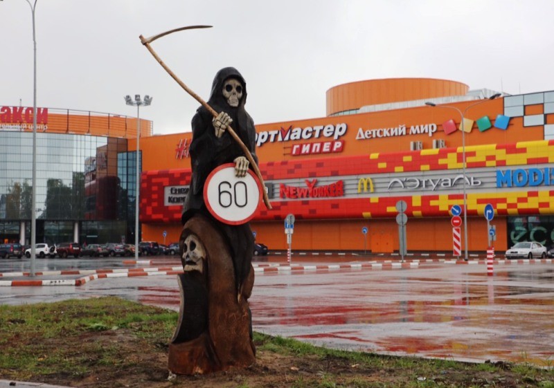 Архангельские чиновники стали инициатором установке на оживленной трассе деревянной скульптуры «Смерть с косой». По замыслу сотрудников муниципалитета, «высокая девушка с характерной внешностью, смертельными атрибутами и дорожным знаком, обозначающим ограничения скорости в населённом пункте в 60 км/ч, призвана напомнить жителям о необходимости соблюдения скоростного режима и в городе».