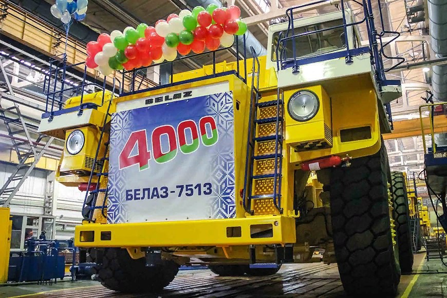 На минском заводе ОАО «БелАЗ» с конвейера сошёл четырёхтысячный самосвал серии 7513 грузоподъёмностью 130 тонн. Как сообщает местный портал «БЕЛТА», машина получит прописку в Кировском филиале АО «Апатит».