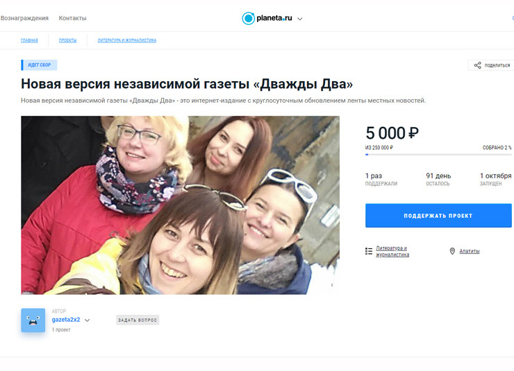 Редакция апатитской независимой газеты «Дважды Два» объявила о запуске краундфайдинга для обновления сайта. Сбор средств проходит на платформе Planeta.ru.