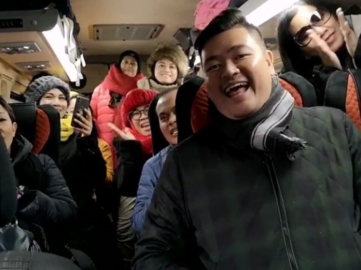 Индонезийцы спели песню «Happy birthday to you» в туристическом автобусе. Напомним, что многие восточные туристы приезжают не только посмотреть на само северное сияние, но и зачать ребёнка. Считается, что в таком случае родится мальчик.
