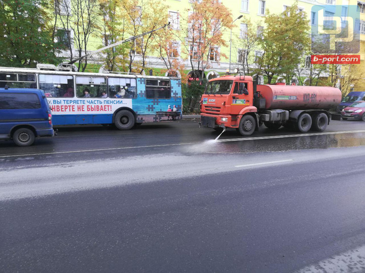 Управление дорожного хозяйства в Мурманске отправило 11 октября в город поливальные машины, чтобы помыть осевую разметку. Многие мурманчане недоумевают, зачем «дорожники» занимаются столь бесполезным делом в осенний сезон. Чуть ли не каждый день в Мурманске идет дождь.
