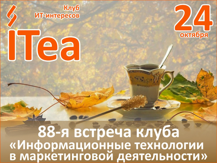 24 октября клуб ITea соберется 88-й раз! Тема встречи – «Информационные технологии в маркетинговой деятельности».