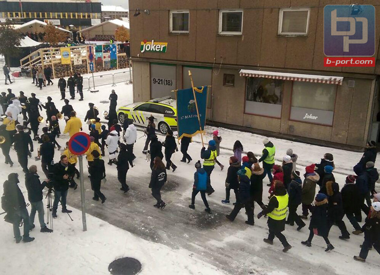 Местные движутся строем к центральной площади под аккомпанемент духового оркестра. На самом мероприятии выступят с торжественной речью король Норвегии Харальд V, министр иностранных дел России Сергей Лавров и мэр Киркенеса Рюне Рафаэльсен.