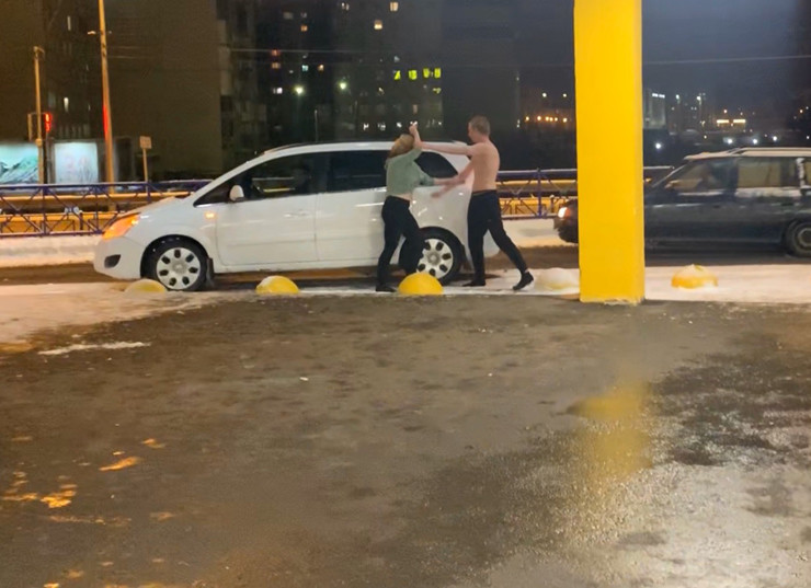 Как утверждают свидетели случившегося, охрана гипермаркета почему-то вмешиваться не стала. Между тем, мужчина не угомонился и продолжил хулиганить на парковке. Его слегка нетрезвая подруга со словами «мне холодно, пожалуйста, поехали домой» пыталась усадить дебошира в автомобиль. Однако «герой» вздумал разбираться и с ней. Но девушка оказалась не робкого десятка и дала сдачи. И уже здесь все-таки мужчину скрутила охрана.
