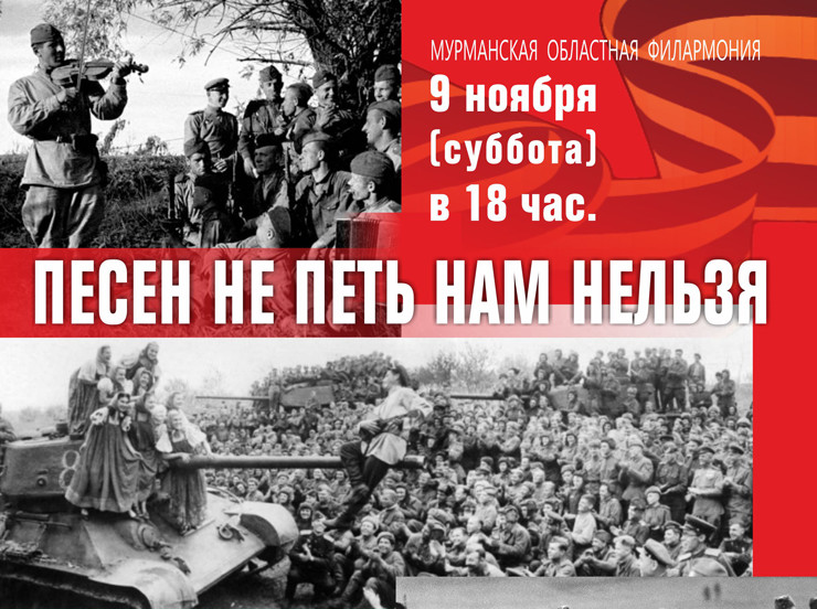 Вы услышите песни, которые привозились артистами на передовую, запоминалась и пелись потом на дорогах войны