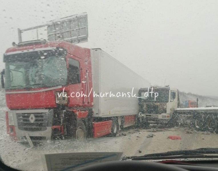 «Выезд из Мурманска на юг перекрыт, - пишут они. - Развернуло фуру у отворота к РЦ «Магнит»».