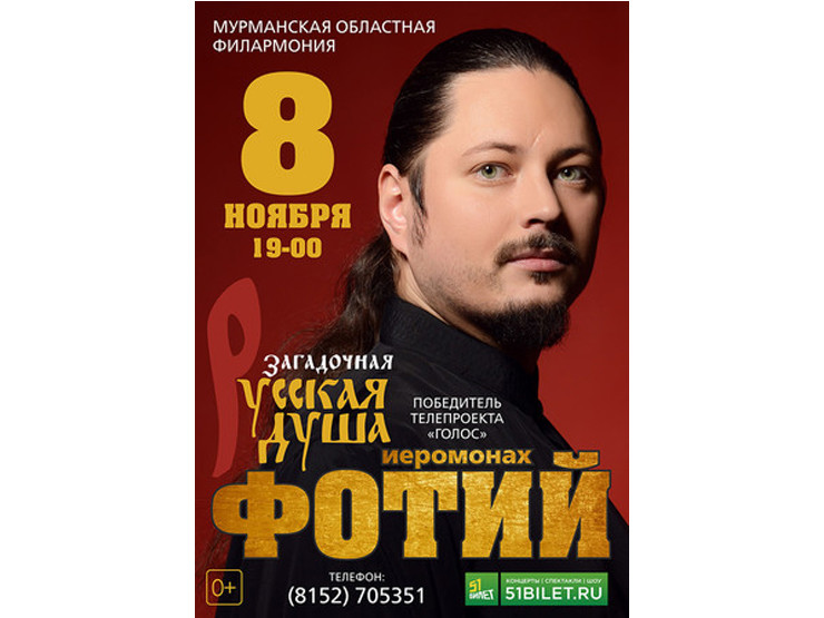 В филармонии 8 ноября в 19 часов пройдет концерт иеромонаха Фотия «Загадочная душа».