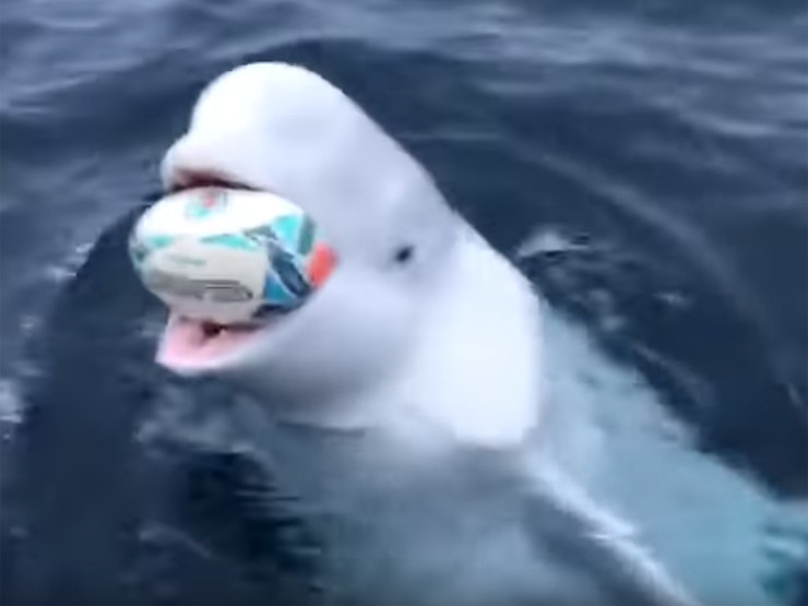 Члены экипажа исследовательского судна Gemini Craft провели необычную игру с проплывавшей рядом с кораблём белухой. Исследователи подбрасывали животному регбийный мяч.