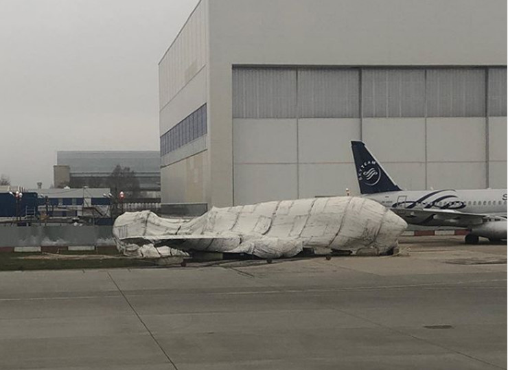 «Так и стоит на краю поля, прикрытый брезентом, но хорошо узнаваемый - люди, поднимаясь на трап, оглядывались и крестились. Понимаю, что наверно не аэропорт решает, пока следствие и все такое - но все же не лучшая идея предполётного экспириенса», – пишет журналист в Инстаграме.