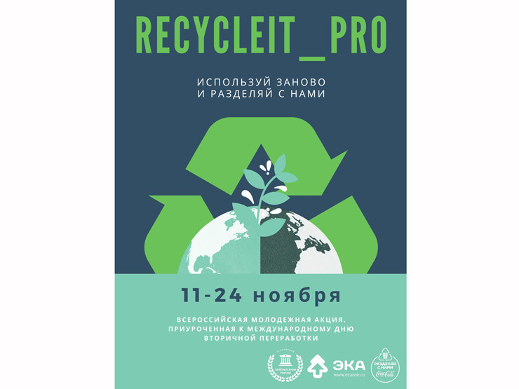 Ассоциация зеленых вузов России при поддержке движения ЭКА в преддверии Всемирного дня вторичной переработки начинает третью молодежную акцию по сбору вторсырья «Recycle It. Pro». Участникам предлагается в период с 11 по 24 ноября организовать прием вторичного сырья в своих учебных заведениях, а также провести мероприятия, которые будут посвящены второй жизни вещей и раздельному сбору отходов.