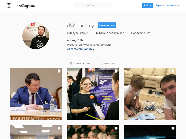 Губернатор Мурманской области Андрей Чибис занял 15 место с индексом 20. За неделю глава региона опубликовал 12 постов и 16 историй в Instagram. Всего Instagram-аккаунтами владеют 66 глав регионов.