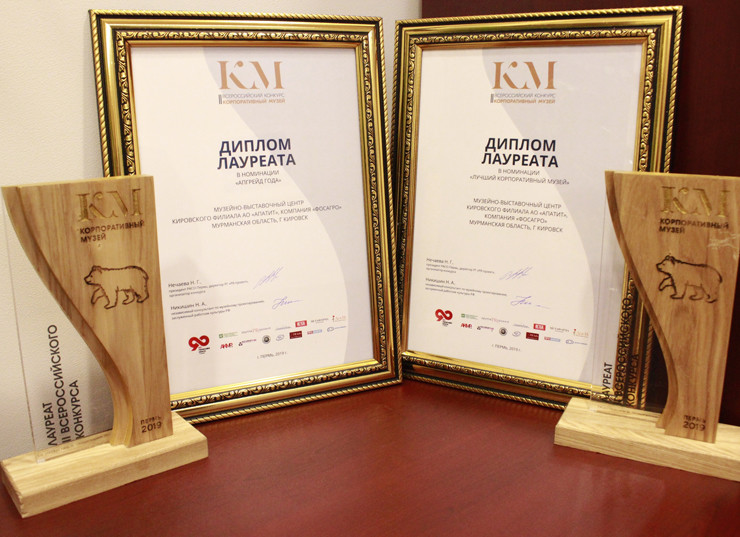 Музейно-выставочный центр Кировского филиала АО «Апатит» получил первое место в номинации «Лучший корпоративный музей» во Всероссийском конкурсе «Корпоративный музей». Его исследовательская лаборатория «Геопрактик» также стала победительницей конкурса в номинации «Апгрейд года».