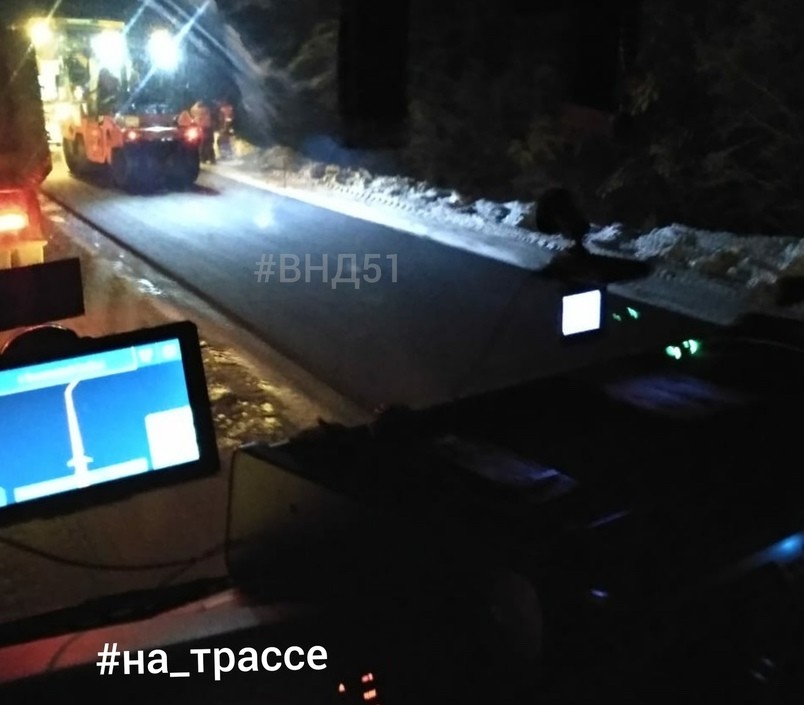 Заполярные водители выложили в Интернет фото вечерней укладки асфальта под Зеленоборским. Больше всего северян смутило время работ – в десятом часу вечера, а также окружающая зимняя обстановка.