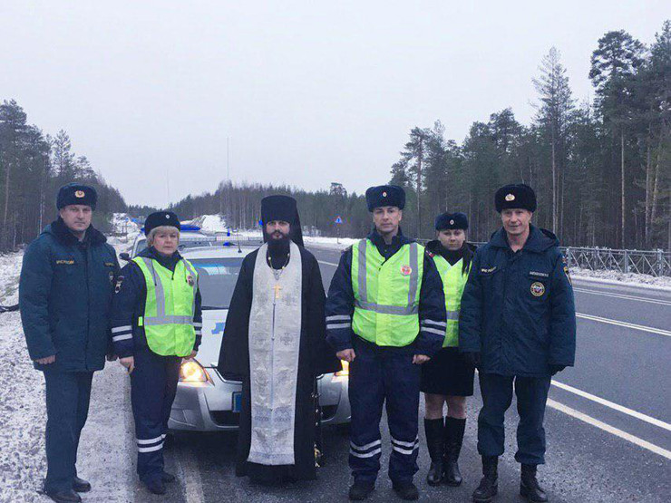 В Сегежском районе Карелии настоятель Троицкого храма отец Мануил совершил объезд совместно с сотрудниками районного ГИБДД и МЧС Карелии по аварийно-опасным участкам трассы «Кола».