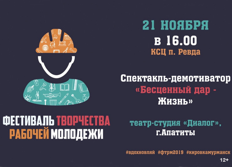 В Мурманской области стартует акция «Фестиваль творчества рабочей молодёжи». Стартует она 21 ноября в Культурно-спортивном центре Ревды и продлится до 1 декабря. Мероприятие состоится впервые в нашем регионе.