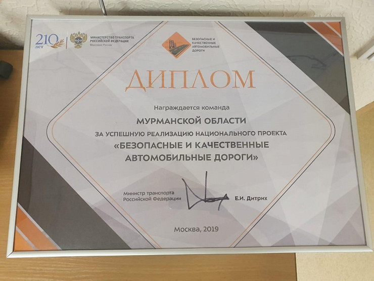 Команда Мурманской области нацпроекта «Безопасные и качественные автомобильные дороги» получила награду в номинации «Прорыв года». Регион достиг одних из наилучших показателей по приведению автодорог в нормативное состояние. Награждение состоялось в рамках «Транспортной недели» в Москве. Мурманскую область представляли заместитель губернатора Ольга Кузнецова и министр транспорта и дорожного хозяйства Дмитрий Соснин.