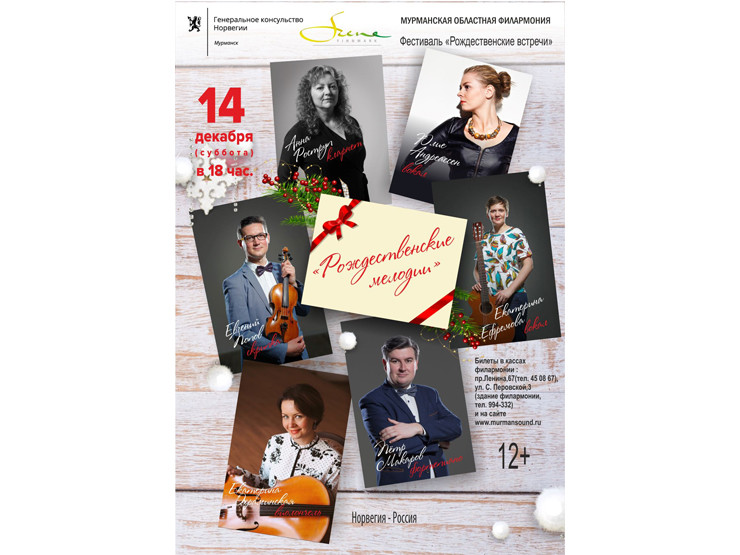 В Мурманской областной филармонии состоится традиционный Рождественский концерт. 14 декабря в 18 часов российские и норвежские музыканты исполнят мелодии, создающие волшебное рождественское настроение.
