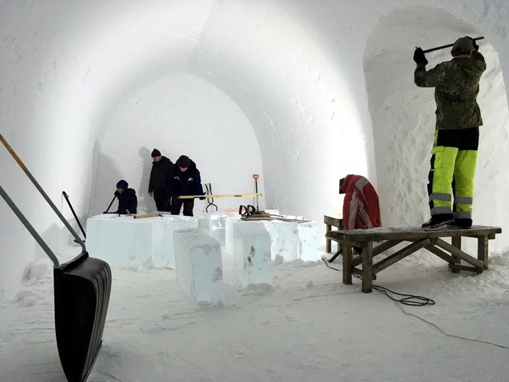 Многие из скульпторов снежно-ледового мастерства приехали из разных уголков страны. На данный момент, проходят работы по созданию ледовых фигур, а также формированию внутренних помещений «Снежной деревни».