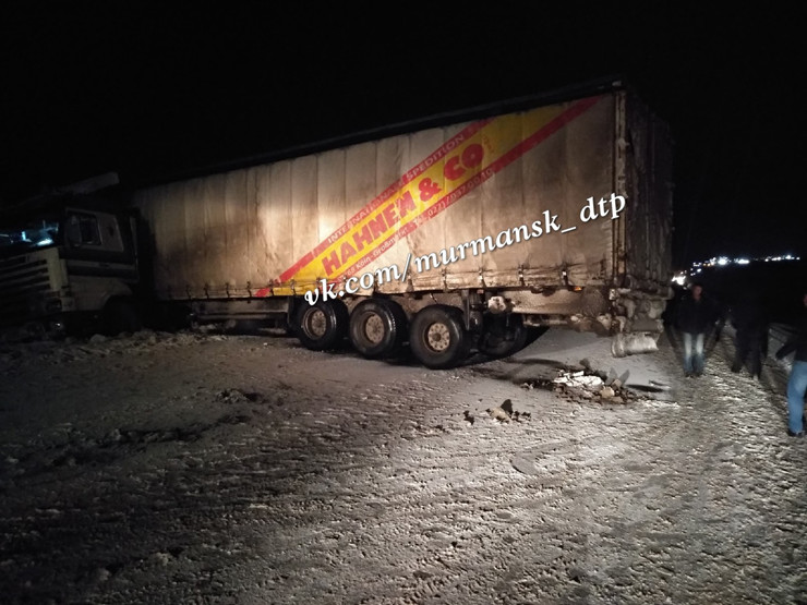 Сообщение о ДТП появилось в группе «Мурманск ДТП ЧП». По фотографиям, которые прислали очевидцы, два грузовика столкнулись кабинами, а у «легковушки» смят бампер. Движение на трассе затруднено.