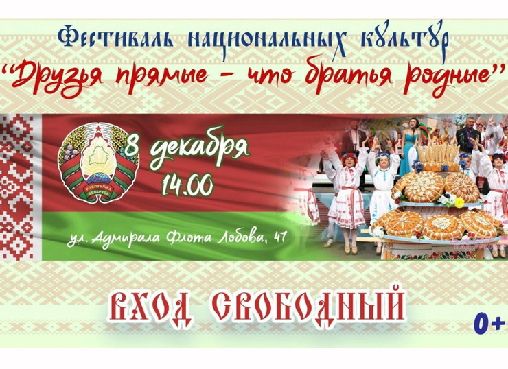 Мурманск отметит 8 декабря фестиваль национальных культур «Друзья прямые – что братья родные». Праздник будет организован в честь юбилея подписания Договора о создании Союзного государства между Российской Федерацией и Республикой Беларусь.