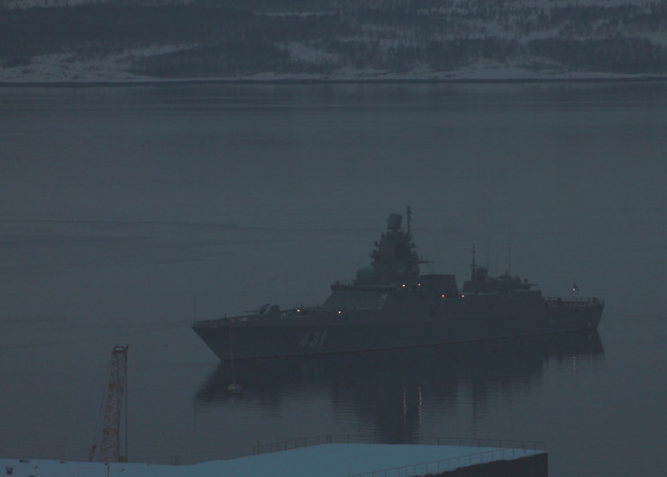 Государственные ходовые испытания фрегата продолжаются. Неделю назад он выполнил стрельбу крылатой ракетой «Калибр» по береговой мишени на боевом поле Чижа в Архангельской области. В конце ноября экипаж фрегата провёл стрельбы крылатыми ракетами «Калибр» и «Оникс» по мишенным позициям в Белом море.
