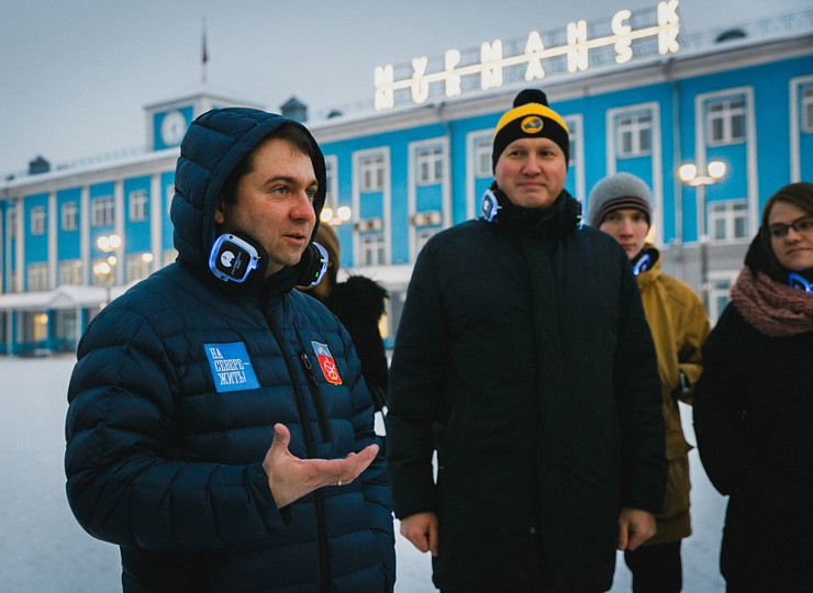 В субботу днём в Мурманске состоялась премьера Арктического театра «Мурманск 4145», посвящённая событиям Великой Отечественной войны. В первой аудиопрогулке приняли участие Андрей и Евгения Чибис и генеральный директор АО «ММТП» Алексей Рыкованов – вместе с другими слушателями они прошагали по центру Мурманска, слушая рассказы о судьбе жителей прифронтового города.