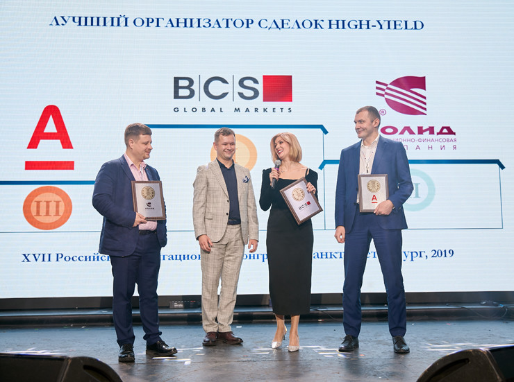 6 декабря 2019 года в рамках XI Российского облигационного конгресса в Санкт-Петербурге состоялась церемония награждения победителей премии Cbonds Awards. По итогам голосования Альфа-Банк вошел в тройку лидеров сразу в двух номинациях: «Лучший инвестиционный банк по работе со II - III эшелоном заемщиков» и «Лучший организатор сделок high-yield». Это признание профессионального сообщества еще раз подчеркивает высокий уровень экспертизы команды Альфа-Банка.