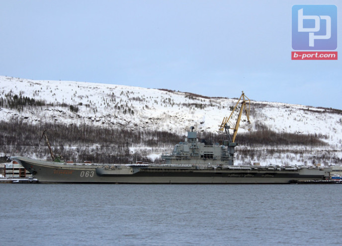 На авианесущем крейсере «Адмирал Кузнецов» возобновились ремонтные работы. Как сообщили «Би-порту» в пресс-службе ЦС «Звёздочка», работы проходят в задней части корабля.