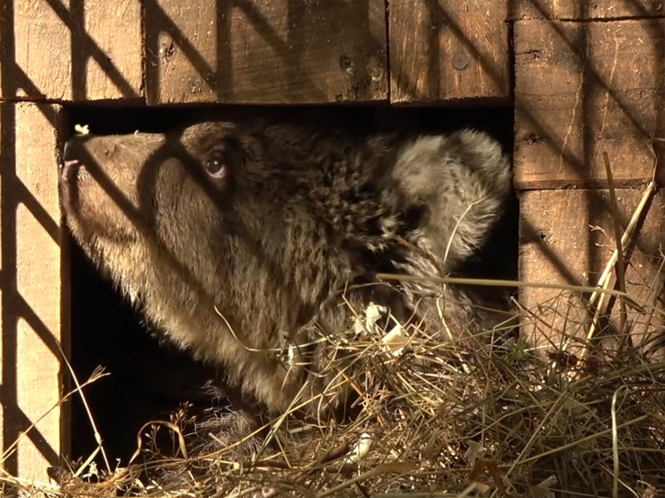 Медведица начала готовиться к зимовке еще в конце ноября – перестала питаться, начала обустраивать свое спальное место, затащила в будку много сена и закрыла им вход. За свою первую неделю в Центре Бъяра поправилась на семь килограмм, а к спячке она весила уже 29 кг. Отмечается, что при таком весе у нее есть все шансы благополучно перезимовать.