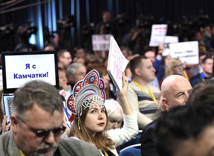 На пресс-конференции президента России Владимира Путина ввели ограничения по размерам плакатов. Об этом сообщают журналисты, которые планируют принимать участие в мероприятии.