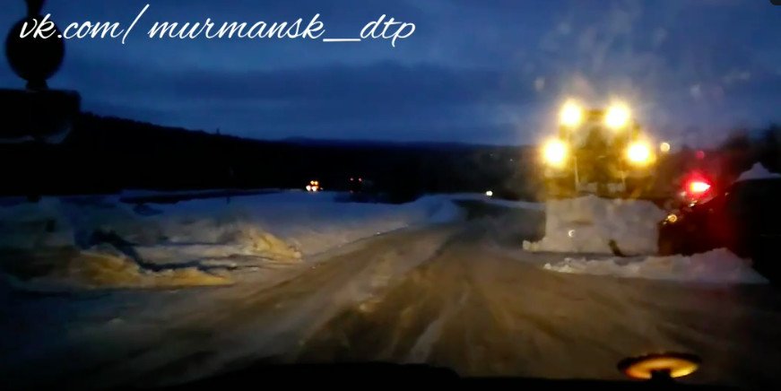 «ДТП с погрузчиком, перед спуском в Кильдинстрой», - комментирует автор кадров.