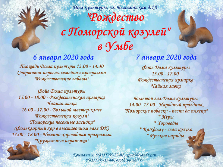 Дом культуры Умбы организует большой праздник в честь Рождества. Проведение мероприятий расписано на два дня - 6 и 7 января.