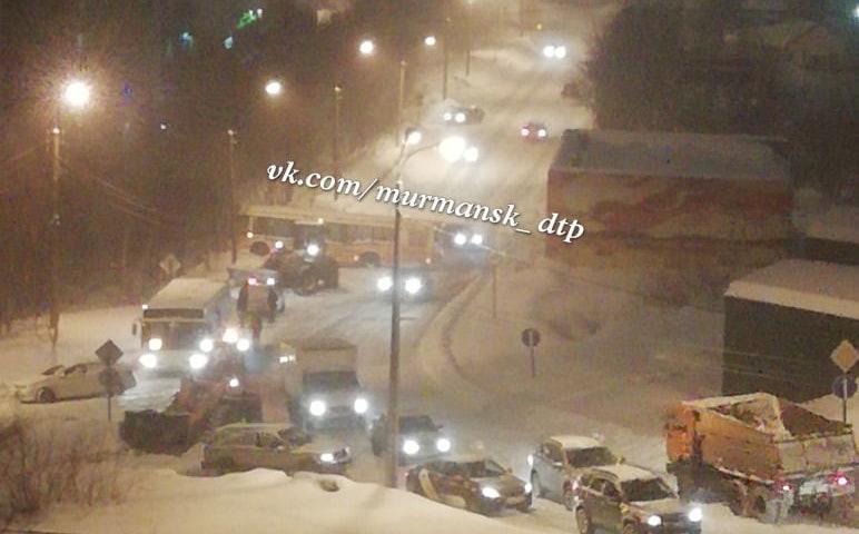 «Там ДТП, троллейбус скатился на легковую в правом ряду, ну и автобусы шлифуют, у бассейна так же», - пишут одни мурманчане.