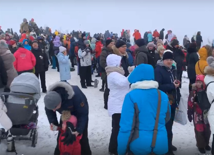 Множество мурманчан собралось на Солнечной горке, чтобы встретить первый рассвет и отметить официальное окончание полярной ночи. Но погода северянам, в отличие от вчерашнего дня, не благоволила. Из-за снежной пелены и пасмурного неба лучей светила так и не удалось увидеть.