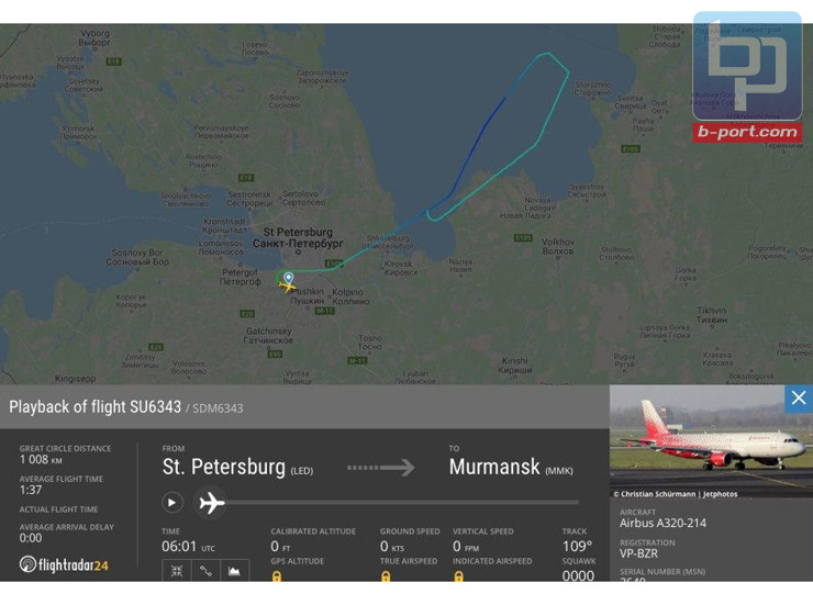 Рейс авиакомпании «Россия» сообщением Петербург – Мурманск возвращается в аэропорт Пулково. Это следует из данных системы Flightradar24.