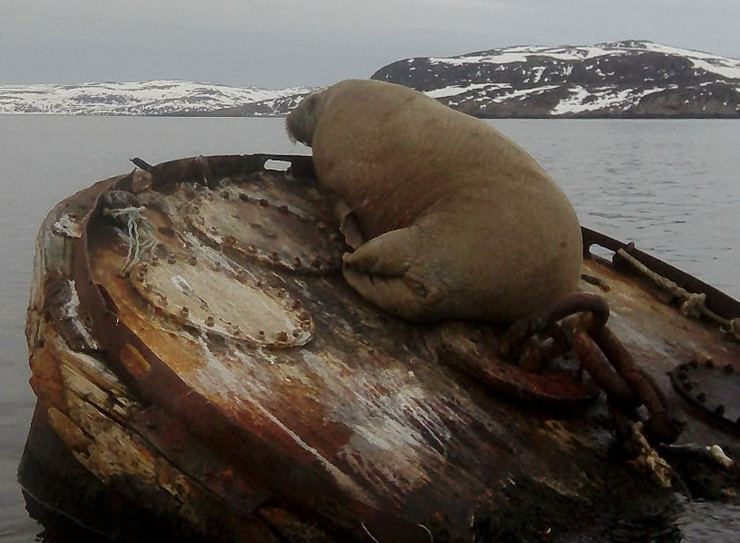 «Вероятнее всего – это лахтак, морской заяц, - предполагают одни пользователи. - Это один из самых крупных представителей семейства настоящих тюленей (и самый крупный в фауне России). Длина тела — до 2,5 м, подмышечный обхват 148—161 см. Масса изменчива по сезонам в зависимости от упитанности, зимой достигая 360 кг. Распространён почти повсеместно на мелководьях Северного Ледовитого океана».