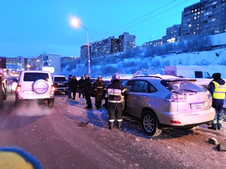 В Мурманске на улице Папанина произошло крупное дорожно-транспортное происшествие. Возле дома №11 автомобиль Lexus столкнулись с шестью машинами.