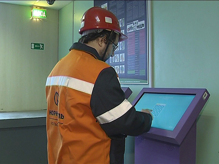 «Предсменный экзаменатор» представляет собой информационный киоск с сенсорным экраном. Всего на территории Кольской ГМК установлено 33 таких аппарата. Пользователь идентифицирует себя с помощью электронного пропуска или табельного номера и перед заступлением на смену отвечает на три вопроса по технике безопасности. Причём на прохождение тестирования отведено всего 60 секунд.