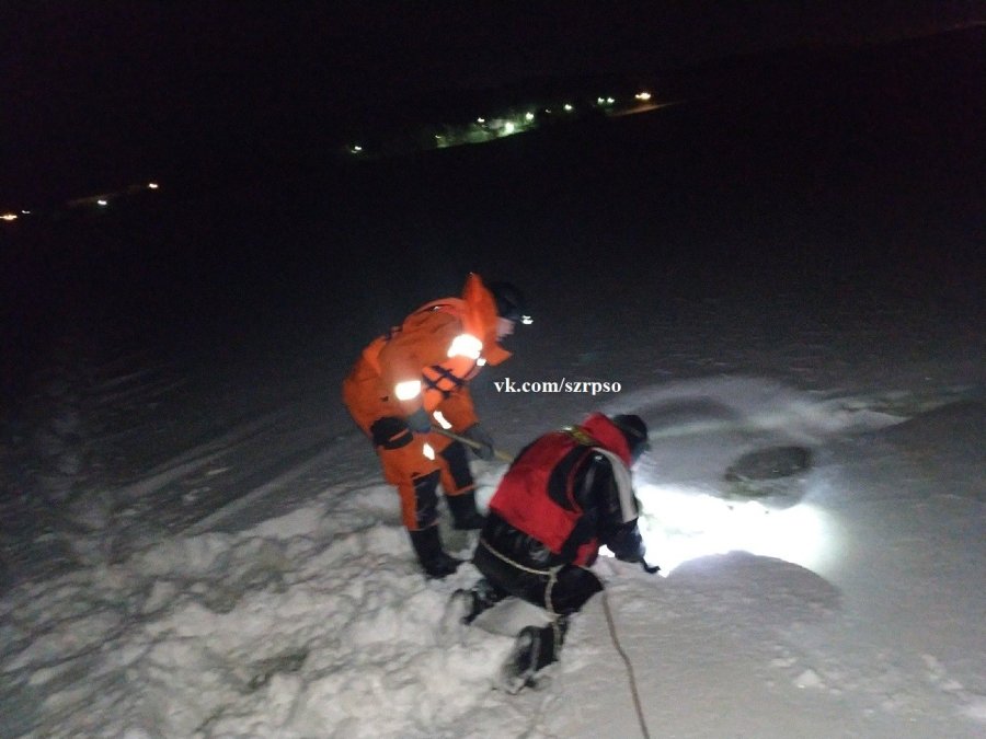Спасатели возобновили работу на следующее утро. Была осмотрена местность, опрошены и сориентированы вышедшие на лед рыбаки. Один из рыбаков рассказал, что заметил в промоине подозрительный предмет.